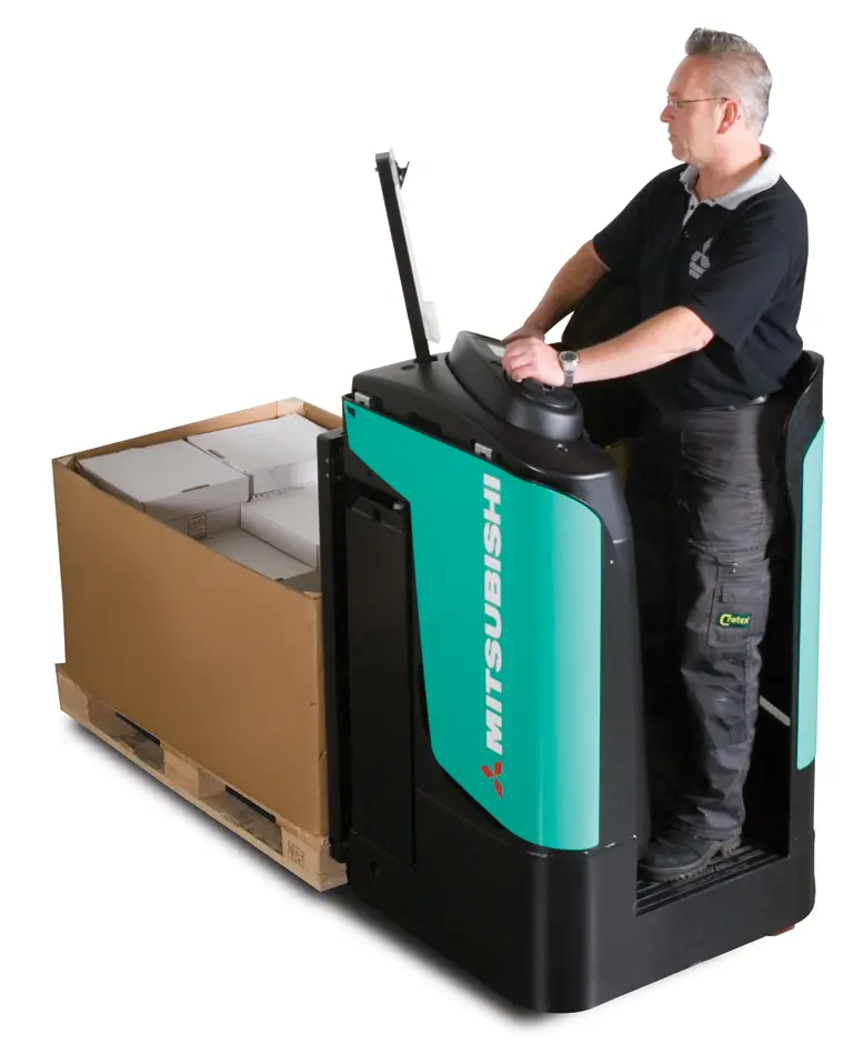 Mitsubishi offers an ergonomic, productive and reliable solution through our M-Lift range of pedestrian powered pallet movers. These cost competitive machines have load capacities ranging from 1600kg to 2000kg, including the popular and versatile flip up/down platform ride-on option.