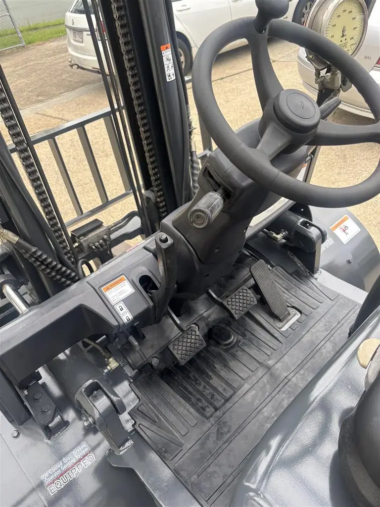 This fully refurbished Crown 4T forklift, with 7600 hours on meter, new tyres all around, dual front wheel with 1600mm wide carriage, side shift, with integrated fork positioner, currently has 1070mm forks, huge 4850mm lift height, why buy new when you can save thousands on this refurb and runs and looks better than new.